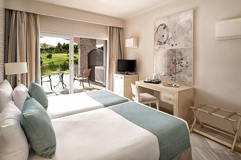This spacious, air-conditioned room offers satellite TV, free Wi-Fi, a mini-bar and a private bathroom with a hairdryer. It has a private balcony with great views over the golf courses. Rooms for guests with reduced mobility are available. Please note that neither extra beds nor babycots can be added to this room type. Double bed only by request and subject to availability.